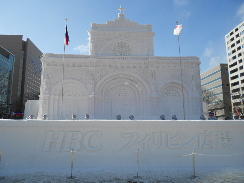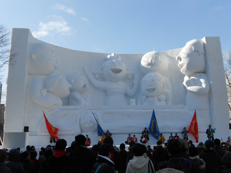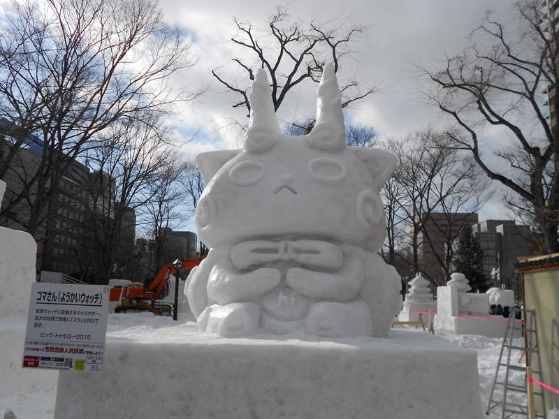今年の雪像は大きなものはスター・ウォーズ、台湾の行天宮、マニラ大聖堂、春日大社中門、サザエさん一家などで、小さい雪像は色々ありましたが、今年は妖怪ウォッチのキャラクターが多かったです。(2015年2月6日、場所:大通公園、撮影:福田)
