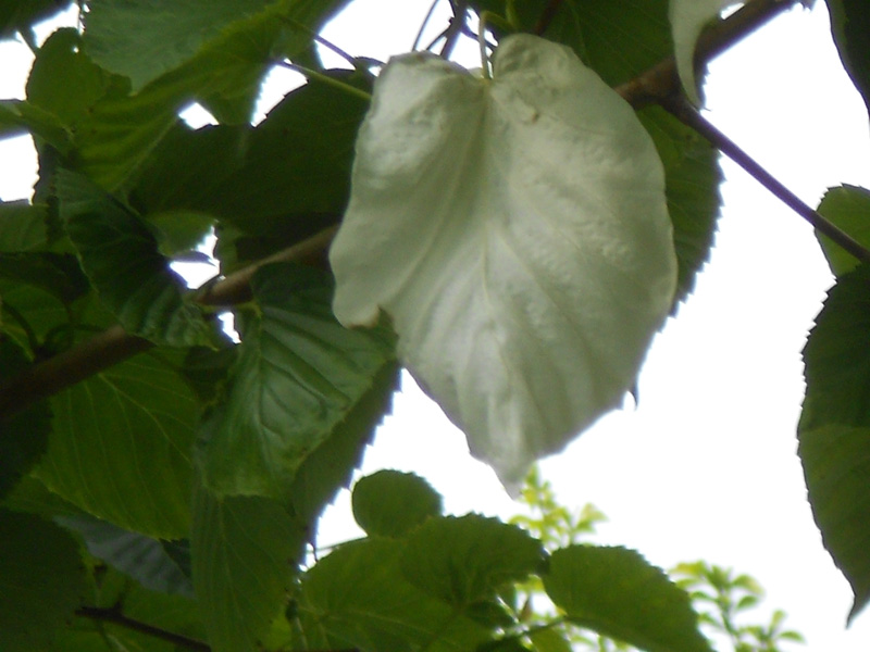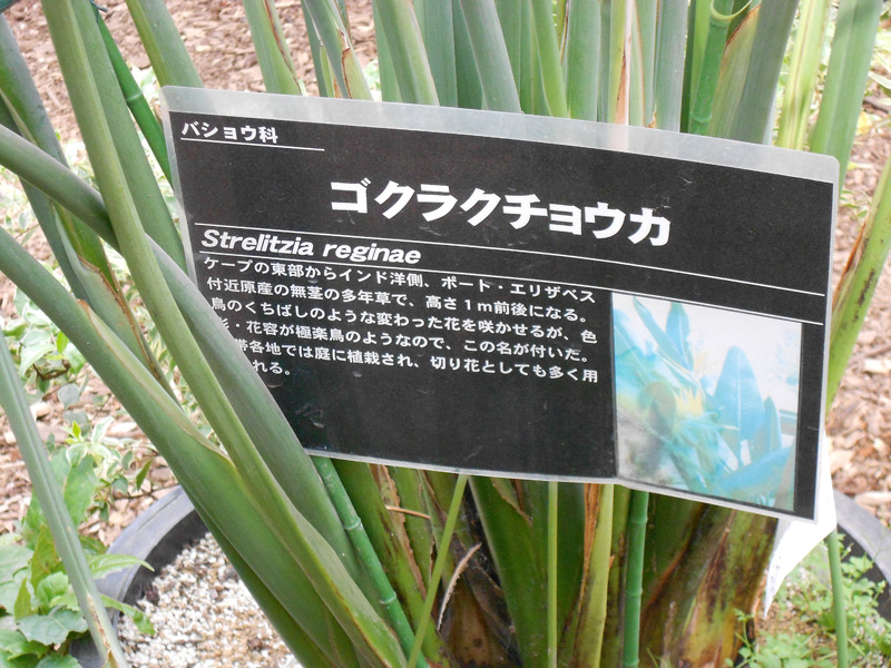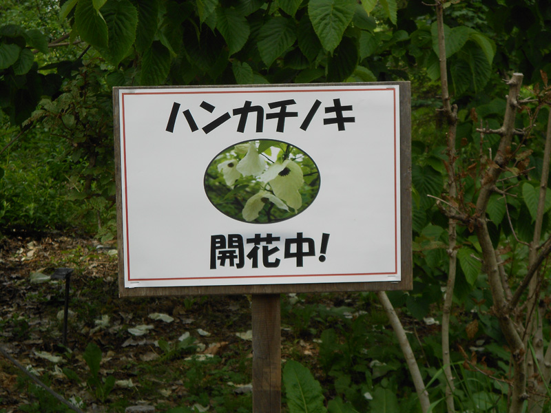 あと、「極楽鳥花」という鳥そっくりの花や「ハンカチの木」という白い大きな苞葉がハンカチの様に垂れ下がる面白い木がありました。(2015年6月2日、場所:百合が原公園、撮影:福田)