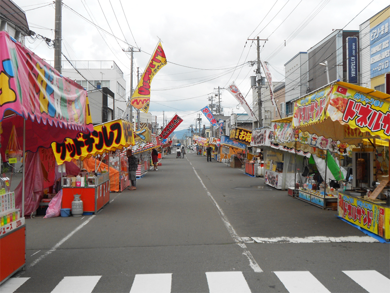その日はちょうど深川神社例大祭の後日祭と重なっていたのでお祭りの出店を見に行きました。(2019年8月21日、場所:深川市中心部、撮影:福田)