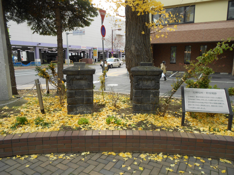 現在は札幌軟石によって作られた正門の柱の跡が残されています。